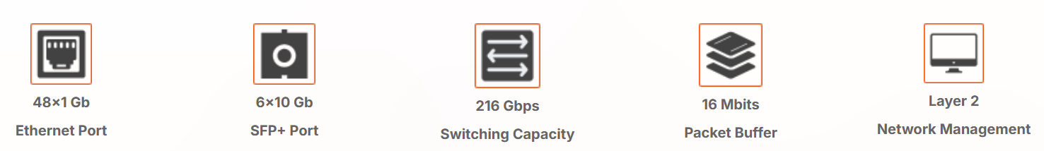 48 puertos 10/100/1000BASE-T RJ45 con 6 ranuras SFP+ de 10G